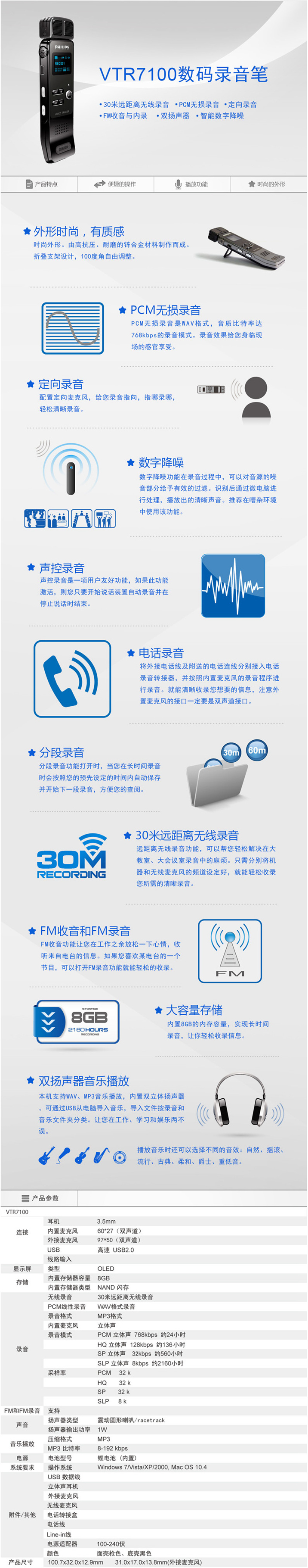 名稱: 飛利浦錄音筆VTR7000