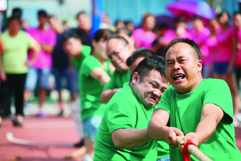 第二個(gè)比賽日舉行摸石頭過(guò)河、托運(yùn)大氣球、同舟共濟(jì)、男女混合拔河等余下項(xiàng)目。異常激烈的拔河比賽把冠軍的懸念留到了最后,觀眾們忘情的喊著加油,運(yùn)動(dòng)員們恨不得再大力一些,把象征勝利的紅繩徹底拉到己方區(qū)域。