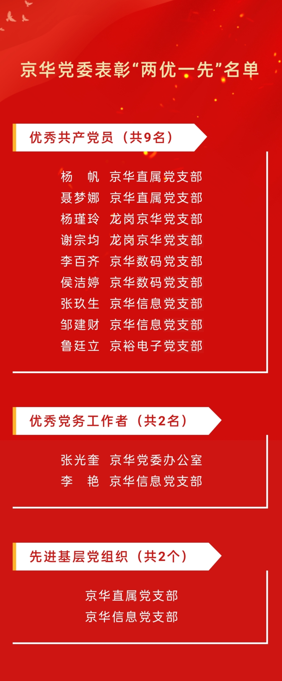 黨委委員、總會計師邢洋宣讀《京華公司關(guān)于表彰“兩優(yōu)一先”的決定》,與會領(lǐng)導(dǎo)為獲獎代表頒發(fā)榮譽證書并合影留念。公司黨委號召全體黨員干部向受表彰的先進(jìn)集體和個人學(xué)習(xí),堅定理想信念,敢于擔(dān)當(dāng)、積極作為,為 “十四五”開新局、起好步,貢獻(xiàn)智慧和力量!
