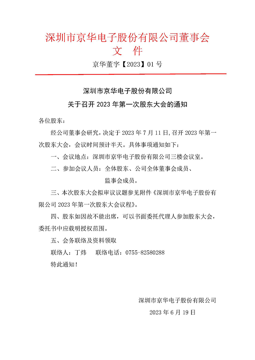 關于召開2023年第一次股東大會的通知